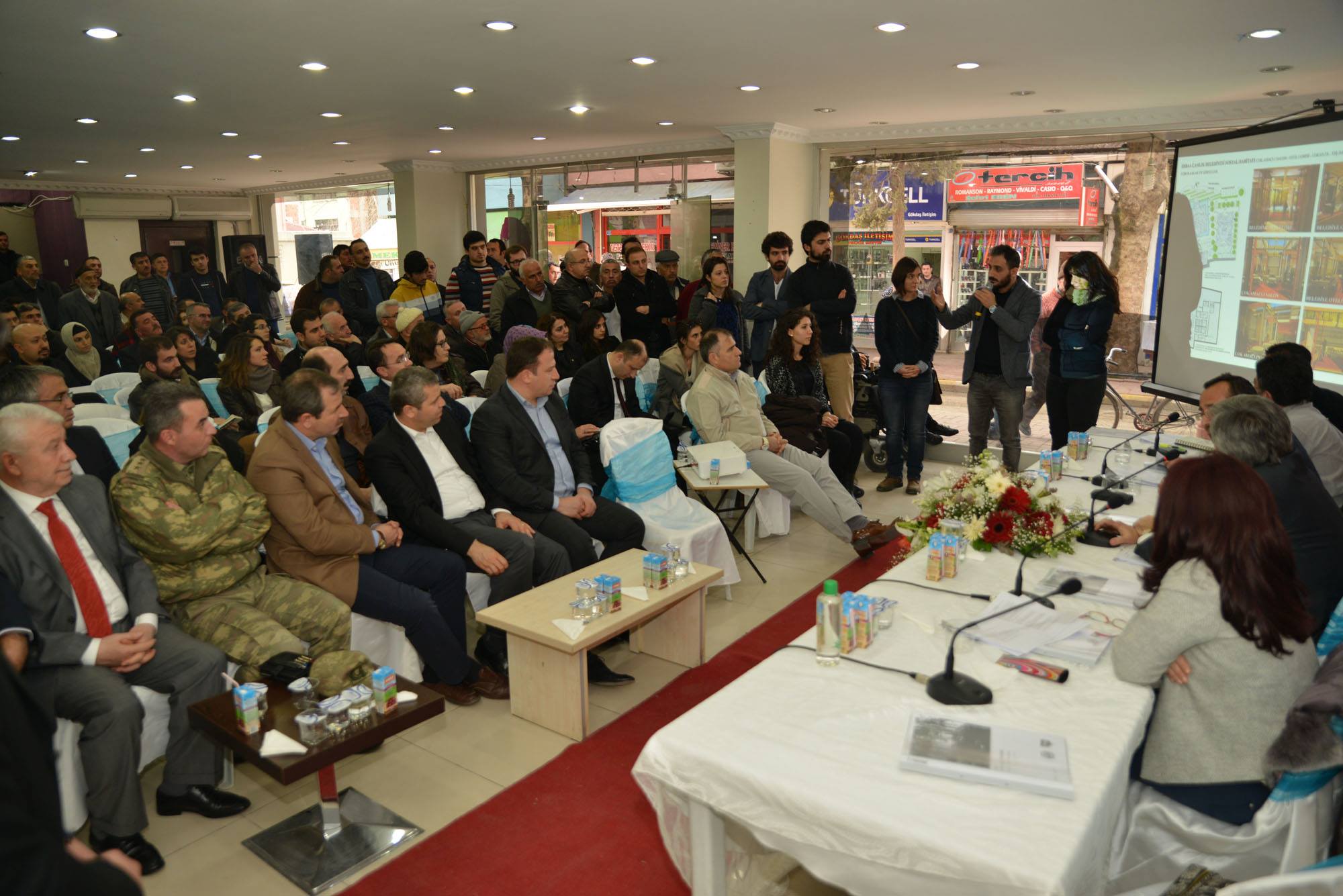 Erbaa Belediyesi tarafından başlatılan Yeni Erbaa Çamlık Sosyal Habitat Ulusal Mimari Proje yarışmasının ödül töreni, kolokyum ve sergisi Erbaa Vali Şerif Yılmaz Caddesi’nde hazırlanan binada gerçekleştirildi.Programa Erbaa Kaymakamı Abdulkadir Demir, Erbaa Belediye Başkanı Hüseyin Yıldırım, Garnizon Komutanı Hüseyin Serin, İlçe Emniyet Müdürü Tüncay Özcanlı, AK Parti Erbaa İlçe Başkanı Mikail Altıntaş AK Parti Tokat Milletvekili Aday Adayları, çok sayıda sivil toplum kuruluşu temsilcisi, mimarlar ve vatandaşlar katıldı.Kolokyum ve ödül töreni öncesi, Yeni Erbaa Çamlık Sosyal Habitatı Ulusal Mimarî Proje Yarışması'nda ödül alan ve yarışmaya katılan projelerin sergi açılışı gerçekleştirildi. 67 proje ve çok sayıda yarışmacının katıldığı yarışmada ödüller; Erbaa Kaymakamı Abdulkadir Demir, Erbaa Belediye Başkanı Hüseyin Yıldırım, İlçe Emniyet Müdürü Tüncay Özcanlı, Garnizon Komutanı Hüseyin Serin ve AK Parti İlçe Başkanı Mikail Altıntaş tarafından yarışmacılara takdim edildi. Ödül töreninin ardından yerlerini alan Jüri Başkanı Mimar Kenan Güvenç, Doç. Dr. Ayşen Çelen Öztürk, Yrd. Doç. Dr. Olgu Çalışkan, Mimar Coşkun Üreyen yarışmaya katılan mimarlar ve programa katılanların sorularını yanıtlayarak jürinin ödül alan projeleri belirlerken gösterdiği yaklaşımı anlattı. Güvenç yaptı konuşmada “Sayın Yıldırım’ın bu konudaki yaklaşımı elbette ayrı bir yere not edilmeli. Sadece belediye başkanı olarak kendi yaşadığı çevreye, yetiştiği yere Erbaa’ya ilişkin bir yurttaşlık görevini yerine getiriyor. Bu çalışmalar entelektüel düzeyde, kültürel düzeyde bize de güç veriyor. Bu süreçte devam edebileceğimiz yere kadar gideceğiz bunda kararlıyız” dedi. GAZİ BULVARI YENİ MEYDAN İLE BÜTÜNLEŞMELİ İMBAT HOROZTEPEYE KAVUŞMALI Başkan Yıldırım yaptığı konuşmada ilk yarışmanın tamamlandığını ancak Erbaa’yı dört büyük yarışmanın daha beklediğini söyledi. Başkan Yıldırım konuşmasını şöyle sürdürdü. “Şehirlerin de kimlikleri vardır, şehirlerin geçmişi vardır, bugünü vardır, yarını vardır. Yapacağımız projeler “YeniErbaa” konseptiyle geçmişi kucaklamalı bugünü bize sunmalı –ama aynı projeler bizi yarına da taşımalı. Bununla ilgili maalesef Erbaa’mızda son dönem yapılan projelerde gördük tek aklın ürünü olan projelerde kamu kaynakları israf edildi hem de şehrin silueti yara aldı. Biz aynı hataya düşmemek adına, doğruları yapmak adına –belki biraz eleştiri aldık 'hani nerde projeler' diye. Belki biraz sabırsız davrandı vatandaşlarımız bizi biraz eleştirdi ama… Biz hep şunu dedik ‘sabır, sabır ve zaman’ güzel projeler ortaya çıkacak. Biz seçim zamanında dağıttığımız kitapçıklarda şöyle söylemiştik: 'Bu kitapçıkları saklayın bunların hepsi yerine gelecek' Ama zaman ve sabırla. İşte bugün projeleri gördük.67 tane proje yarıştı bu yarışmada; Türkiye’nin her yerinden arkadaşlar katıldı. Türkiye’de birçok yarışmaya imza atmış jüri üyelerimizin eşliğinde şiddetli tartışmalar sonucu ortaya çıktı. Bu yarışma burada nihayet buldu. Ancak bu yarışmalar burada bitecek mi? Bitmeyecek. Biz Erbaa’ya hep bir bütün olarak baktık dedik ki çamlık meydansız olmaz, meydan çamlık olmadan olmaz. Aynı zamanda gazi bulvarı meydansız olmaz. Gazi bulvarı stadyumun meydanı ile bütünleşmeli, oradan da imbat ile buluşmalı, imbat da, horoztepeye kavuşmalı dedik. Bu yarışmaların birincisiydi. Önümüzde dört yarışma daha var dört tane yarışma ile daha proje alanlarımızda ortak akılla Erbaa’mızı örgü örgü öreceğiz” dedi.Yarışmaya katılan yarışmacıların ve vatandaşların sorularının yanıtlanmasının ardından kolokyum sona erdi. Kolokyumun ardından protokol ve vatandaşlar yarışmaya katılan projeleri incelemek için sergiyi gezdi. Yarışmada dereceye giren ve katılan tüm projelerin yer aldığı sergi 5 Mart’a kadar açık olacak.