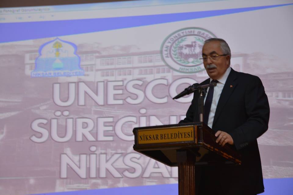 Niksar Belediye Başkanı Özdilek Özcan ise yaptığı konuşmada; “Büyük bir kültür mirasını içinde barındıran Danişmendlilerin Başkenti Niksar’da yaşıyoruz. Ben 2004 yılında Niksar Belediyesine Fen İşleri Müdürü olarak başladığımda Niksar’ımızın tarihi ve kültürel eserlerin korunmasına yönelik süreç daha yeni başlamıştı. 2002 yılında Tarihi Kentler Birliğine üye olduk. 2004 yılında İdris Şahin Belediye Başkanımız, şahsımın ve Proje Müdürümüz Hüseyin Şahin ile beraber Softoğlu Konağı ile başlayan sivil mimari örneklerinin restorasyonu ve günümüze kazandırılma sürecinden şu ana kadar gelen bir süreç var. 2011 yılından Belediye Başkanlığına seçildiğim güne kadar bu çalışmalarda özel sektörde çalıştığım için bulunamadım. Ama Niksar Belediyesi bu çalışmaları her geçen sene üzerine koyarak çalışmalara devam ettiğini gördüm. Bize bu doğrultuda da bize yol haritası sunan, Niksar’ın ilerleyişinde katkı sağlayan çok kıymetli Prof.Dr. Metin Sözen hocama buradan saygılarımı sunuyorum. Kendisi Niksar’ı seven, Niksarla ilgili çok güzel hatıraları olan, kendisinin akademik kariyerinde Niksar üzerinde çalışmaları olan çok değerli bir hocamızdır. Çekül Vakfının başkanı ve Tarihi Kentler Birliğinin kurucularından ve duayenlerindendir. Kendisi Niksar’da şunu söylemişti; “Eğer kale ayağa kalkarsa şehir ayağa kalkar” demişti. Bizde değerli hocamızında dediği gibi kaleyle başladık, birçok sivil mimar örneklerini sokak sağlıklaştırmalarıyla beraber Niksar’ımız da 2008 yıllarında AB Projesi kapsamında ilçe bazında ilk olan alan yönetimi çalışmasını tamamladık ve Niksar’ımızı Unesconun Dünya Miraslar Listesine girme sürecini o günden bu güne kıymetli hocamız Prof.Dr. Metin Sözen’in çizdiği yol haritası çerçevesinde devam ediyoruz. Bu çalışmalardan dolayı çok mutluyum. Niksar’ımızın kültür eserlerinin geleceğe taşınması noktasında bu çalışmanın çok önemli olduğunu ifade etmek istiyorum” dedi.