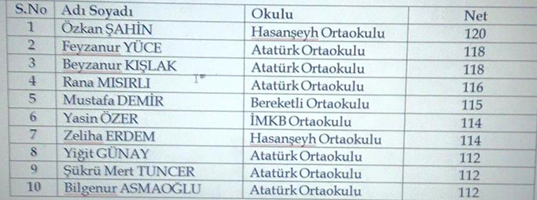 Bir özel tebrik de tüm soruları doğru cevaplayarak Türkiye birincilerinden biri olan Hasanşeyh Ortaokulu öğrencisi Özkan’a.