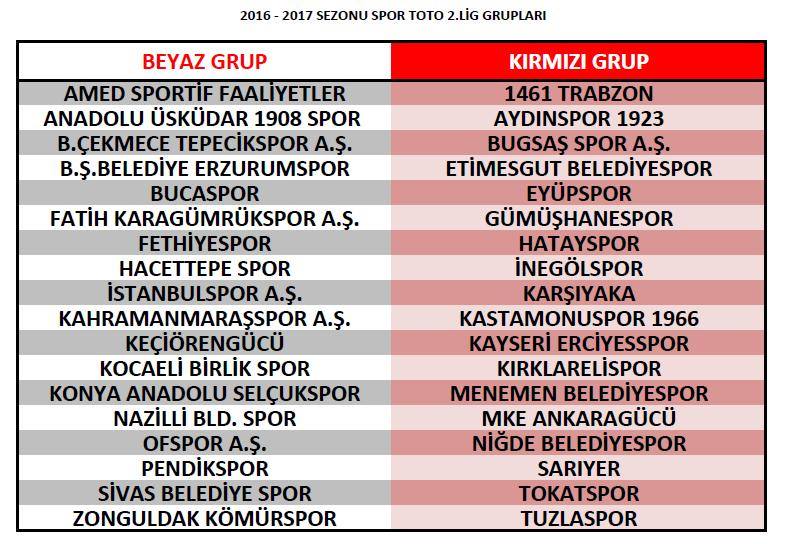 TOKATSPOR'UN 2016 - 2017 SEZONUNDA KIRMIZI GRUPTA MUCADELE EDECEK.