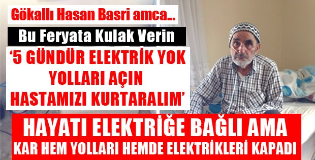Bastıran kar yağışı Erbaa'nın yüksek kesimlerdeki köylerde daha etkili olunca hem yolları kapadı hemde elektrikler kesildi.Tabi hasta olan insanlarımız için acı ve ızdırap dolu günleride beraberinde getirdi.İşte onlara bir örnekte Erbaa Gökal Beldesi Alpaslan mahallesinden Hasan Basri Amca.