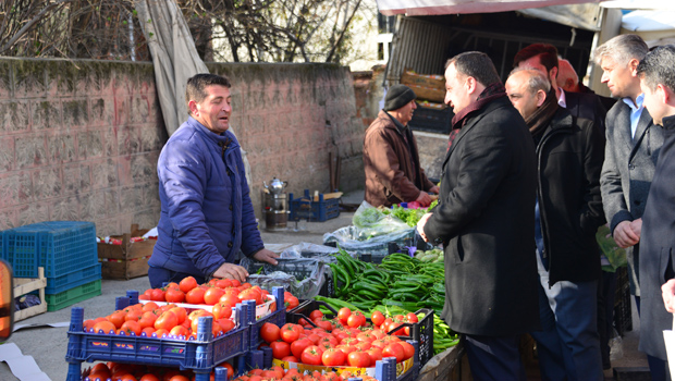 Erbaa Belediye Başkanı Hüseyin Yıldırım pazarcı esnafını ziyaretinde mevcut ilçe stadyumunun