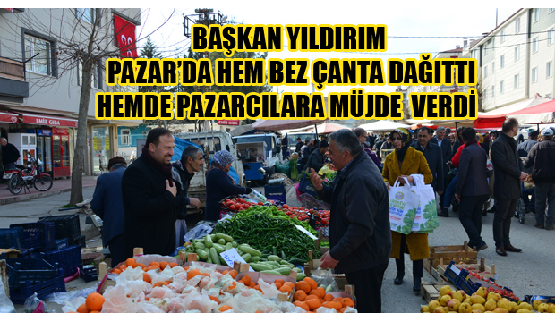 Başkan Yıldırım pazarda vatandaşa bez çanta dağıttı